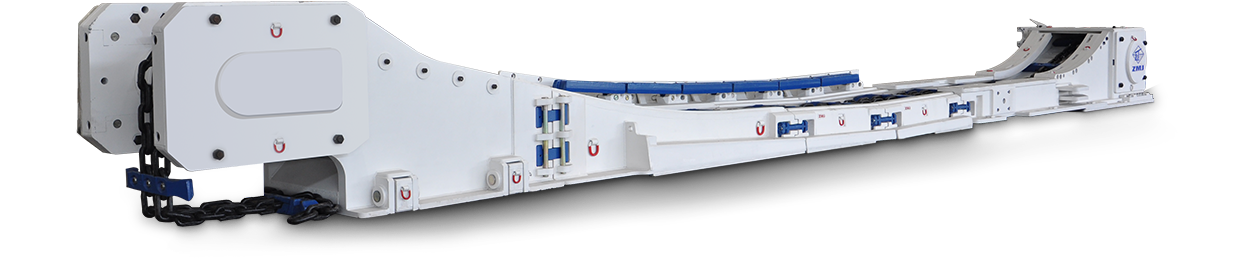 本系列產(chǎn)品中部槽是由鑄造槽幫與 中、底板焊接而成,涵蓋槽寬從630~ 1250mm全系列刮板輸送機,能夠適 應(yīng)一般中厚煤層、特厚煤層,配合配套 的順槽轉(zhuǎn)載機、破碎機、轉(zhuǎn)載機自移和 皮帶機自移機尾等,能夠滿足年產(chǎn)50 ~1000萬噸的井工采煤工作面的使用 要求。